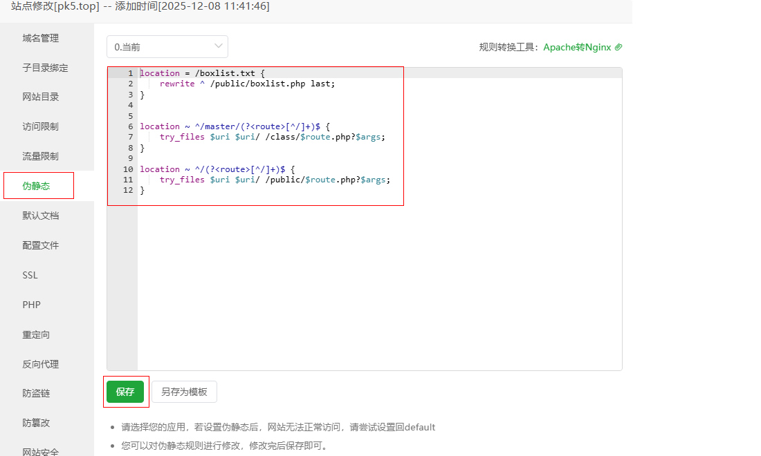 2.设置伪静态规则,伪静态规则在安装包内文本文件;