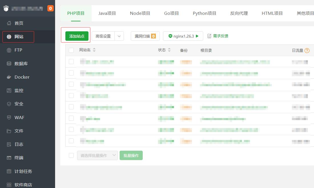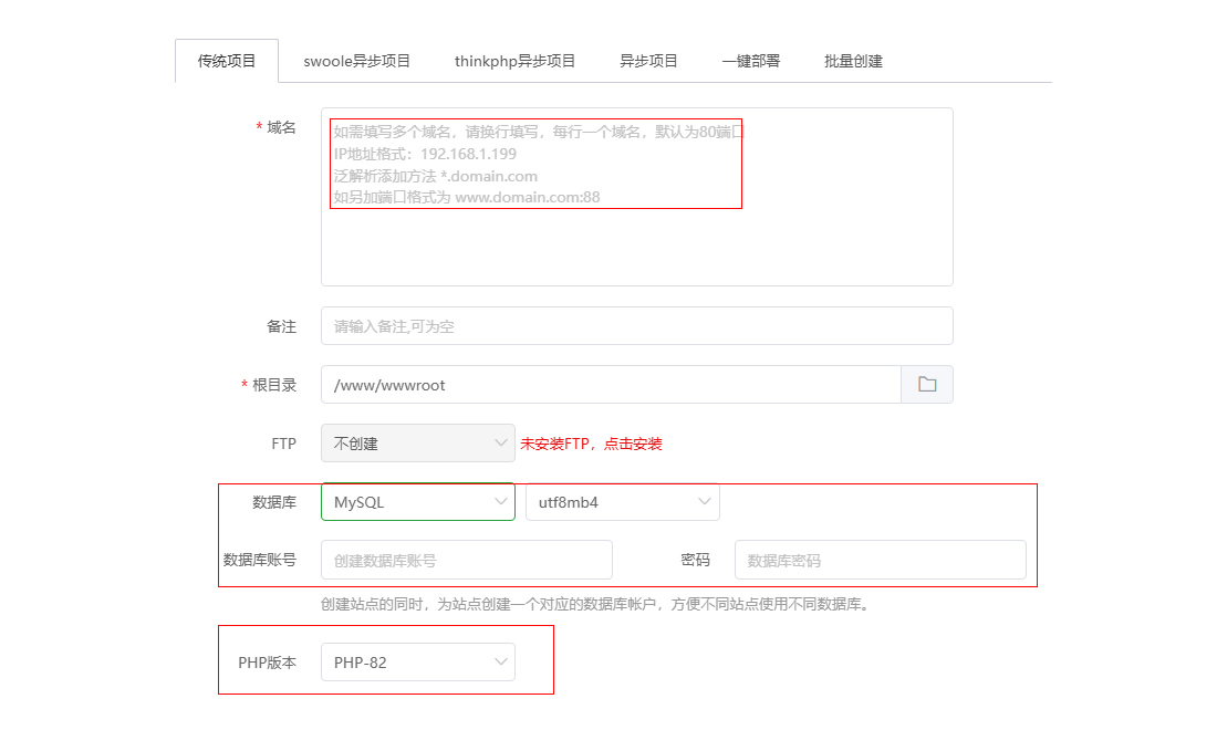 一键安装环境选择:nginx、php8.2、mysql5.7